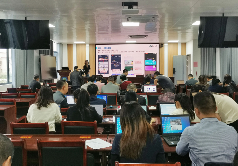 签约仪式后,研究院工作小组围绕“人工智能赋能教学创新与基础教育数字化转型”主题,为试点学校参训人员开展了系统化专题培训。培训涵盖DeepSeek×九章平台的功能介绍、教学场景应用示范及分组实训等环节。实操环节采用“分校分工体验+分角色沉浸研习”模式,参训人员按学校与岗位分组,重点体验教师智能助手、学生学习助手及智慧作业系统等核心功能,通过跨组互动点评和意见反馈,实现了人人参与、人人产出、人人提升的培训目标。