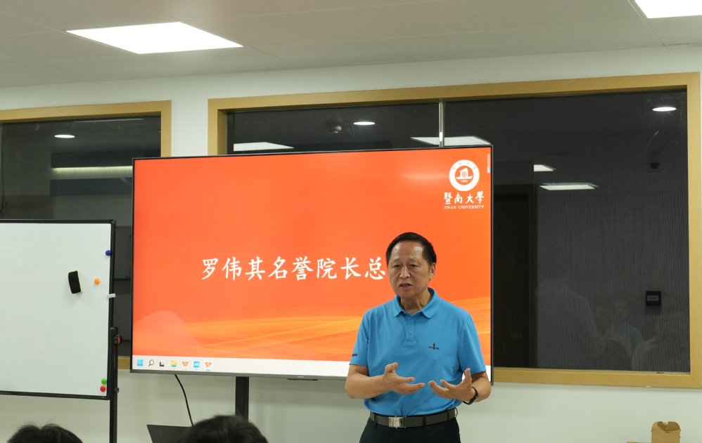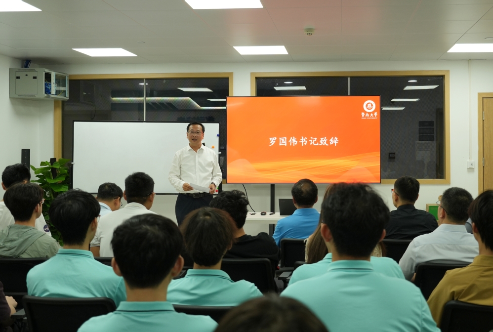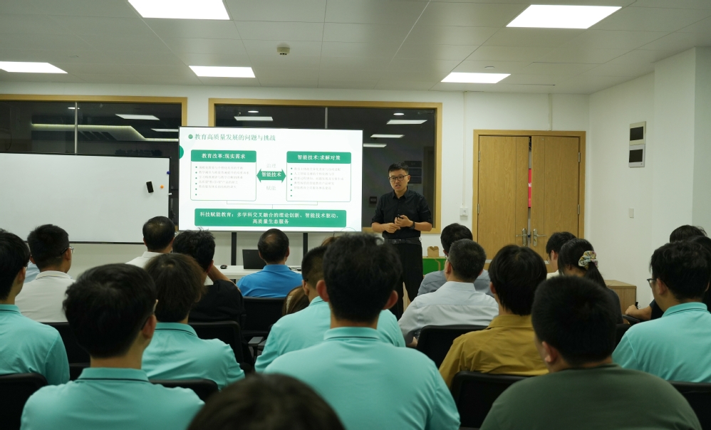 随后,刘子韬院长介绍了广东智慧教育研究院的基本情况、定位与目标。他指出,硕士生和博士生的培养注重理论与实践相结合,核心目标是推动人工智能在教育场景的落地,实现大规模个性化学习,兼顾高质量教学与普惠成本。研究院作为广东省教育厅与暨南大学共建的直属机构,以“政产学研用”协同为思路,聚焦前沿、交叉融合与服务应用。他勉励新生以终为始规划学业,兼顾创新与实用,注重团队合作,在智慧教育快速发展的领域中成长为国家所需的人才。